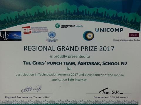 Աշտարակի թիմի մենտոր Նարինե Մեսրոպյանի խոսքերով` աղջիկներն ստեղծել են Safe Internet բջջային հավելվածը, որից օգտվելով երեխաները կարող են անվտանգ զգալ իրենց համացանցում, քանի որ երեխաների անվտանգությունը համացանցում մեծ խնդիր է: Նրանք հաճախ անտեսում են հնարավոր վտանգները,իրազեկված չեն դրանց վերաբերյալ, չգիտեն համացանցային գրագետ վարքի կանոնները՝ դա է պատճառը, որ երեխաները համացանցում առընչվում են բազմաթիվ խնդիրների: Բջջային հավելվածը կօգնի երեխաներին լինել տեղեկացված խաղերի, խորհուրդների, թեմայի վերաբերյալ հղումների միջոցով, անհրաժեշտության դեպքում ստանալ խորհրդատվություն: